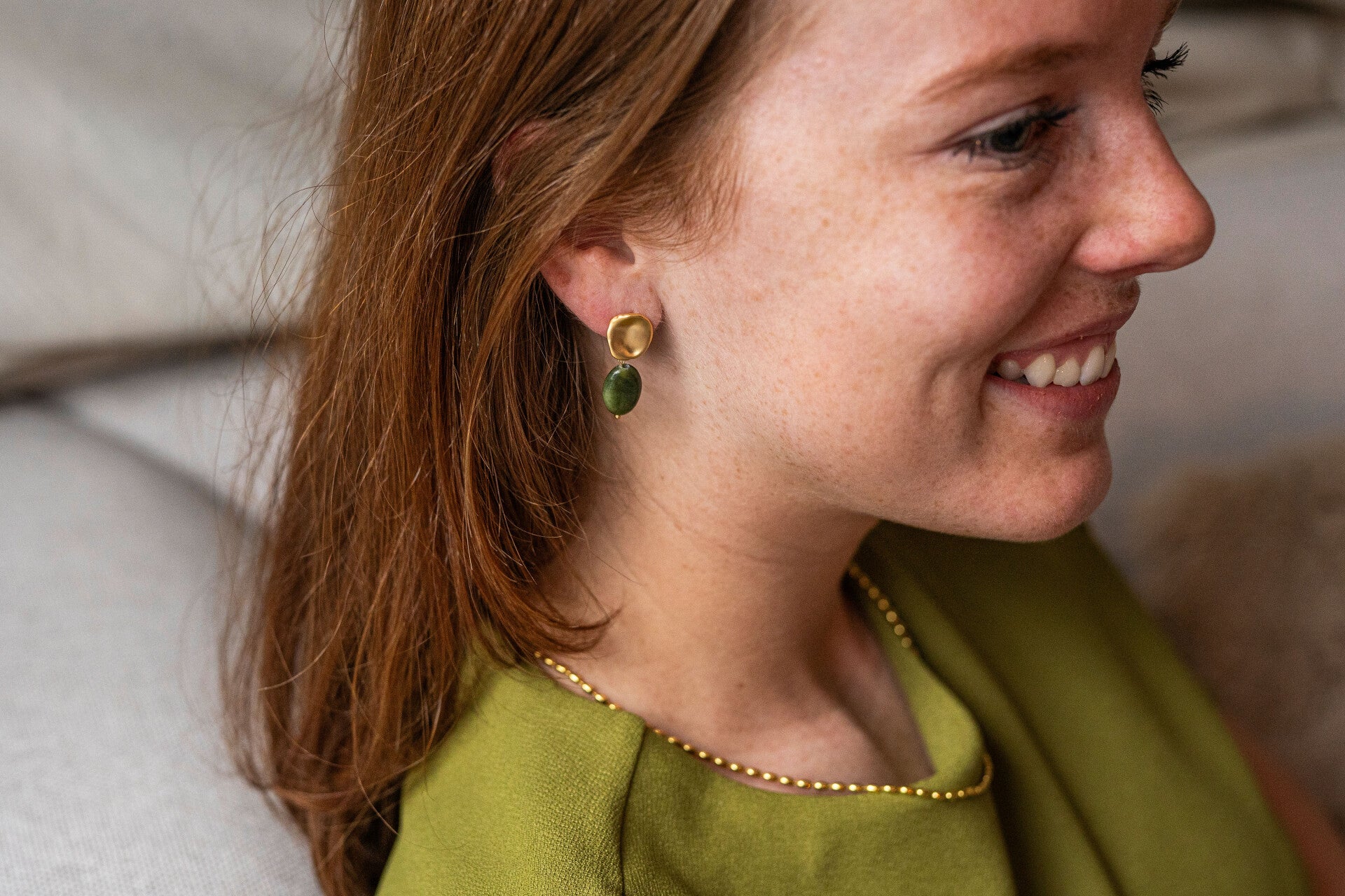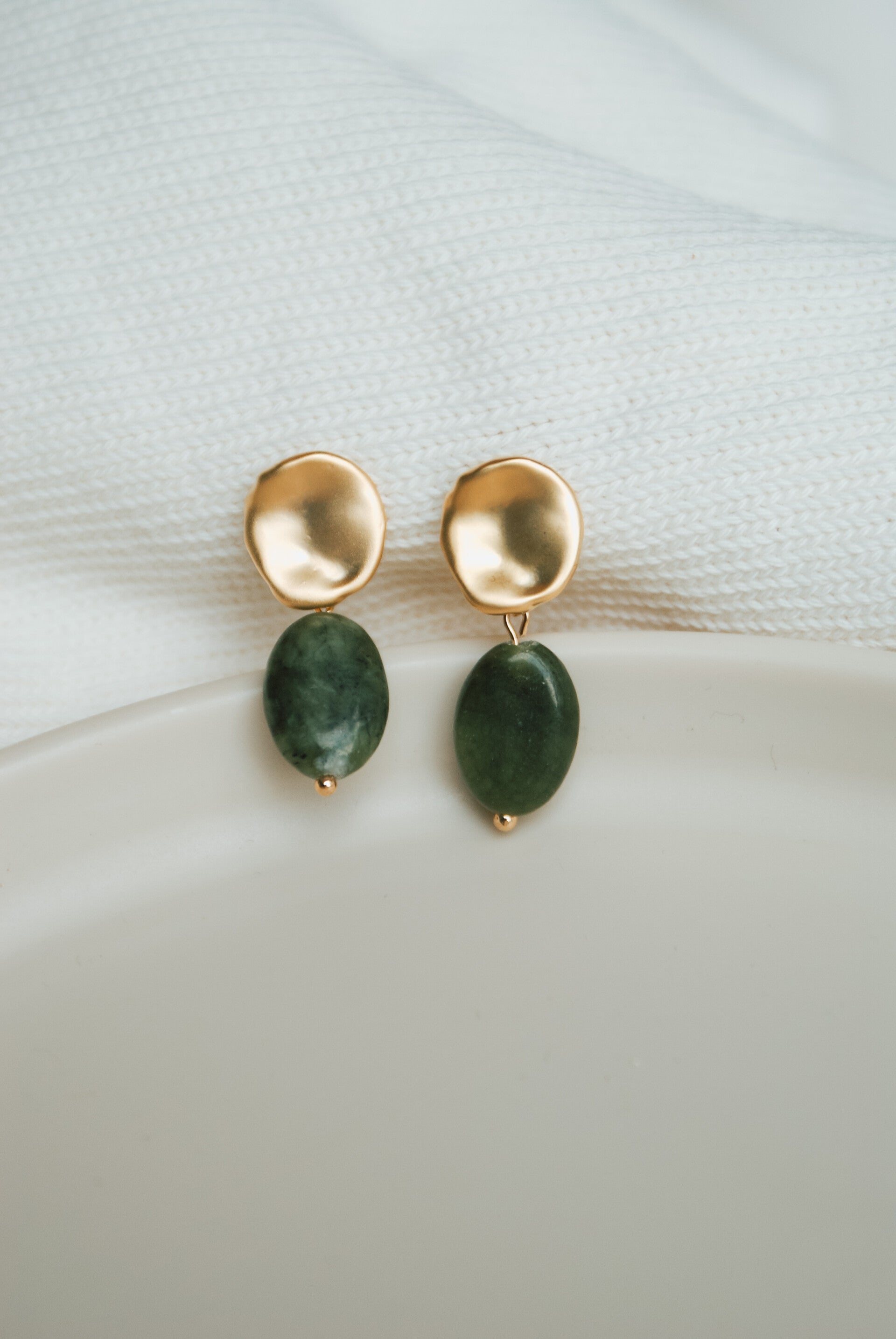 14K goud vergulde knop met natuurstenen hanger in de kleuren zwart en mosgroen.