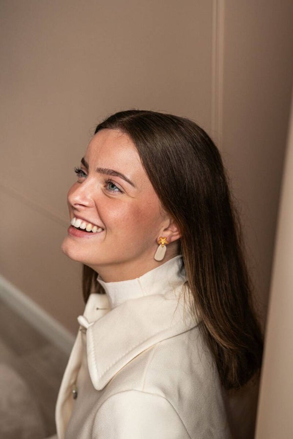 Prachtig kleisieraad met vergulde bloemknop. De hanger beweegt niet en zit vast aan de knop.